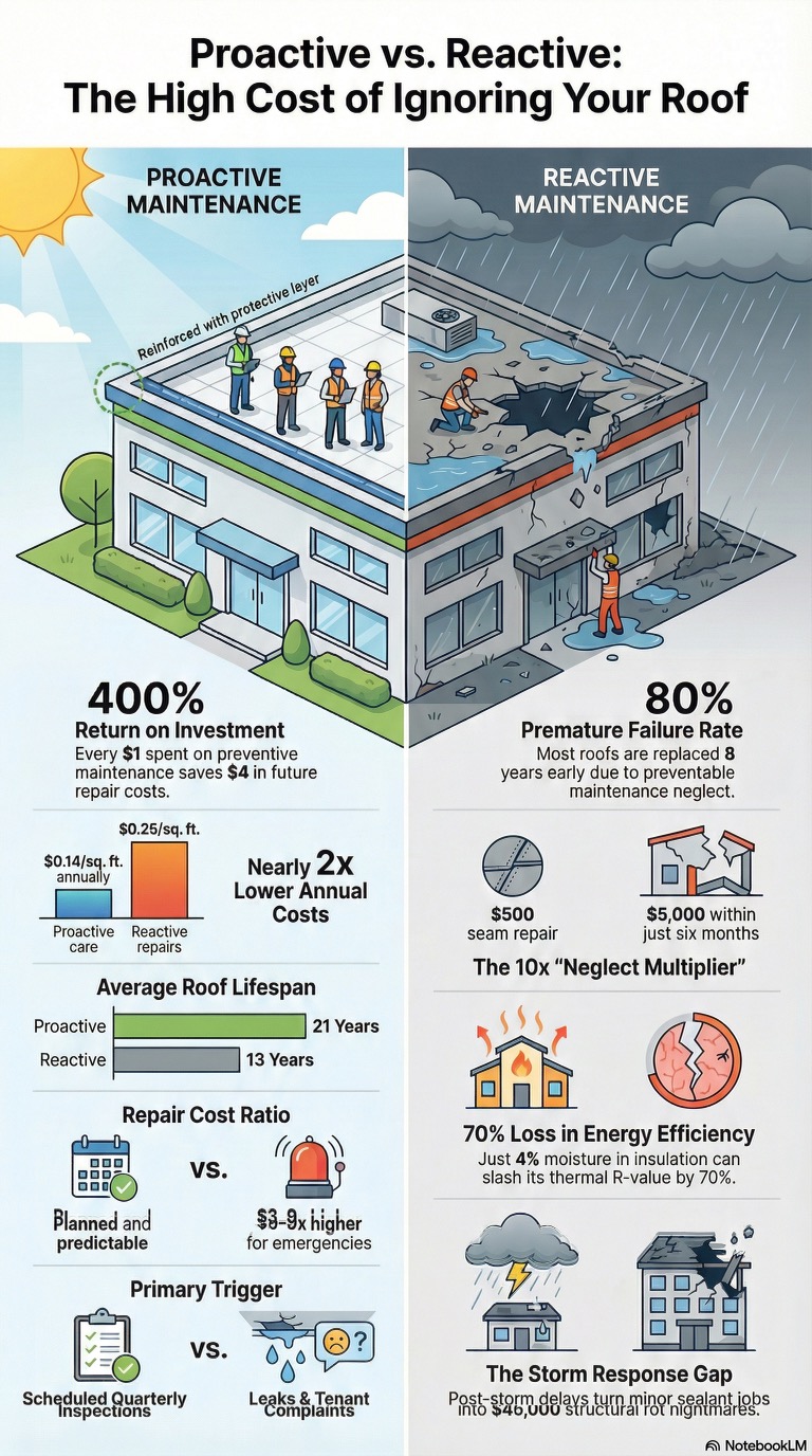 Roof systems often develop hidden issues that cannot be easily identified from ground level or even from a close visual inspection. Thermal imaging can sometimes reveal temperature patterns associated with trapped moisture, insulation concerns, or other irregularities. For building owners and property managers, this can provide a valuable first layer of insight before taking the next inspection steps.